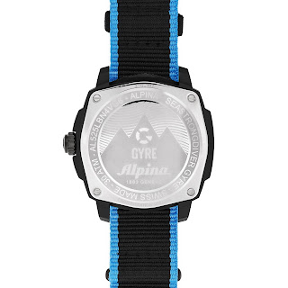 Alpina has developed an eco-responsible black, and blue NATO-style strap made from 100% recycled plastic bottles.